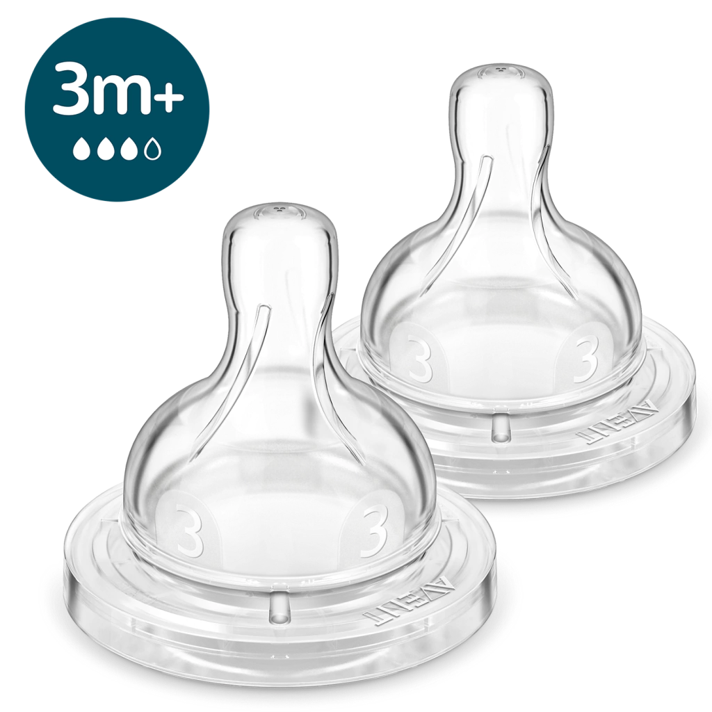 Nosso bico anticólica N.3 possui uma válvula integrada que afasta o ar da barriga do bebê e é recomendado para bebês recém-nascidos, a partir de 0 meses.