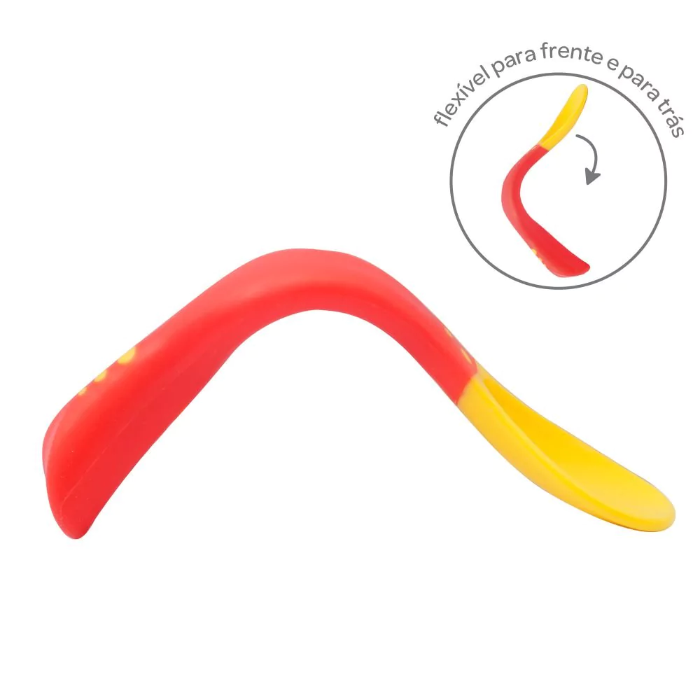 Perfeita para o bebê pegar tranquilamente e fazer a refeição, macia e 100% atóxico. Não machuca a gengiva sensível do bebê. Pode ser curvado tanto para os lados quanto para cima e para baixo, ajudando o bebê comer sozinho. É perfeita para gengivas delicadas e mãozinhas pequenas!