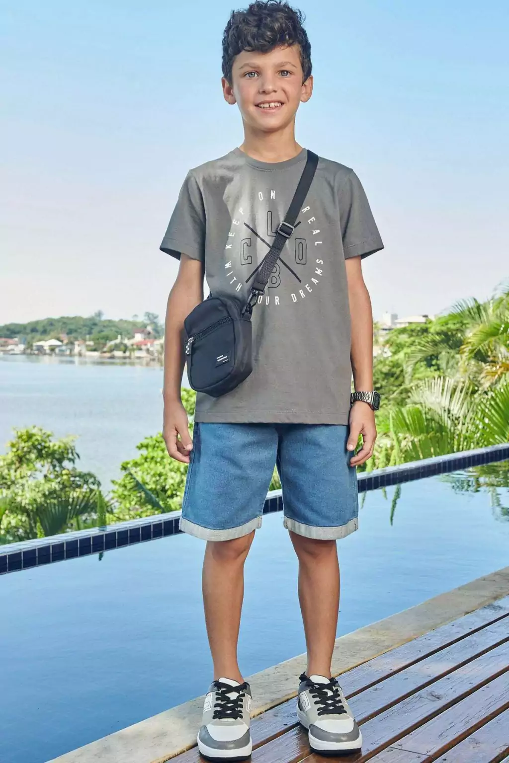 Conjunto de Camiseta em Meia Malha e Bermuda em Malha Jeans Trek com Elastano 68919 LucBoo