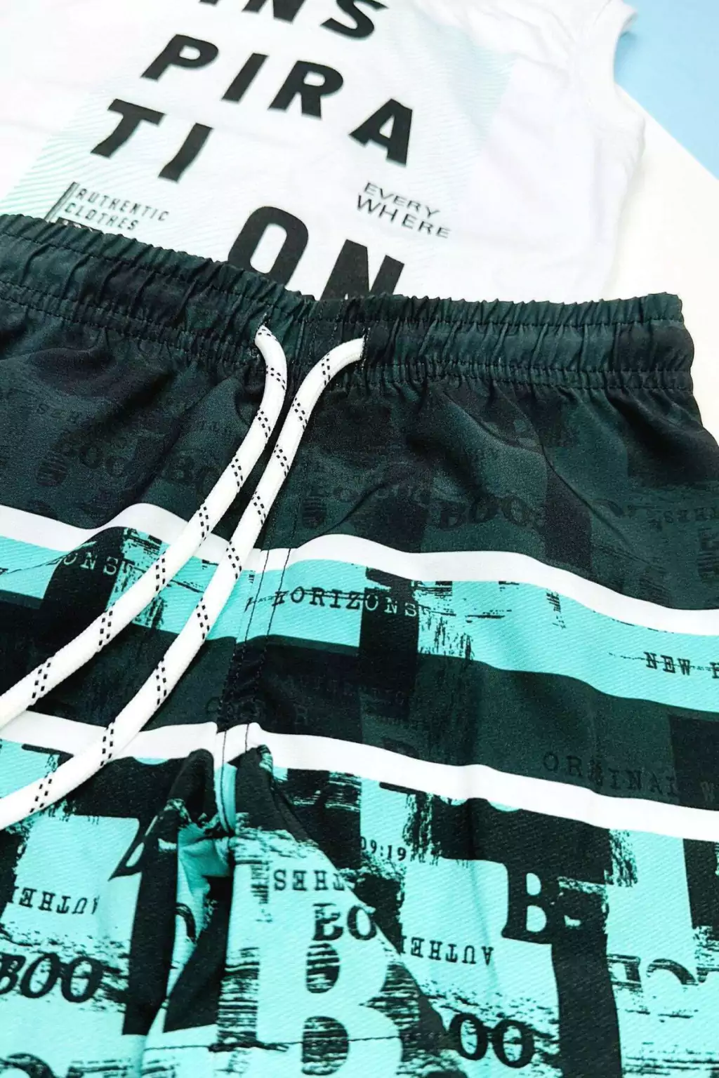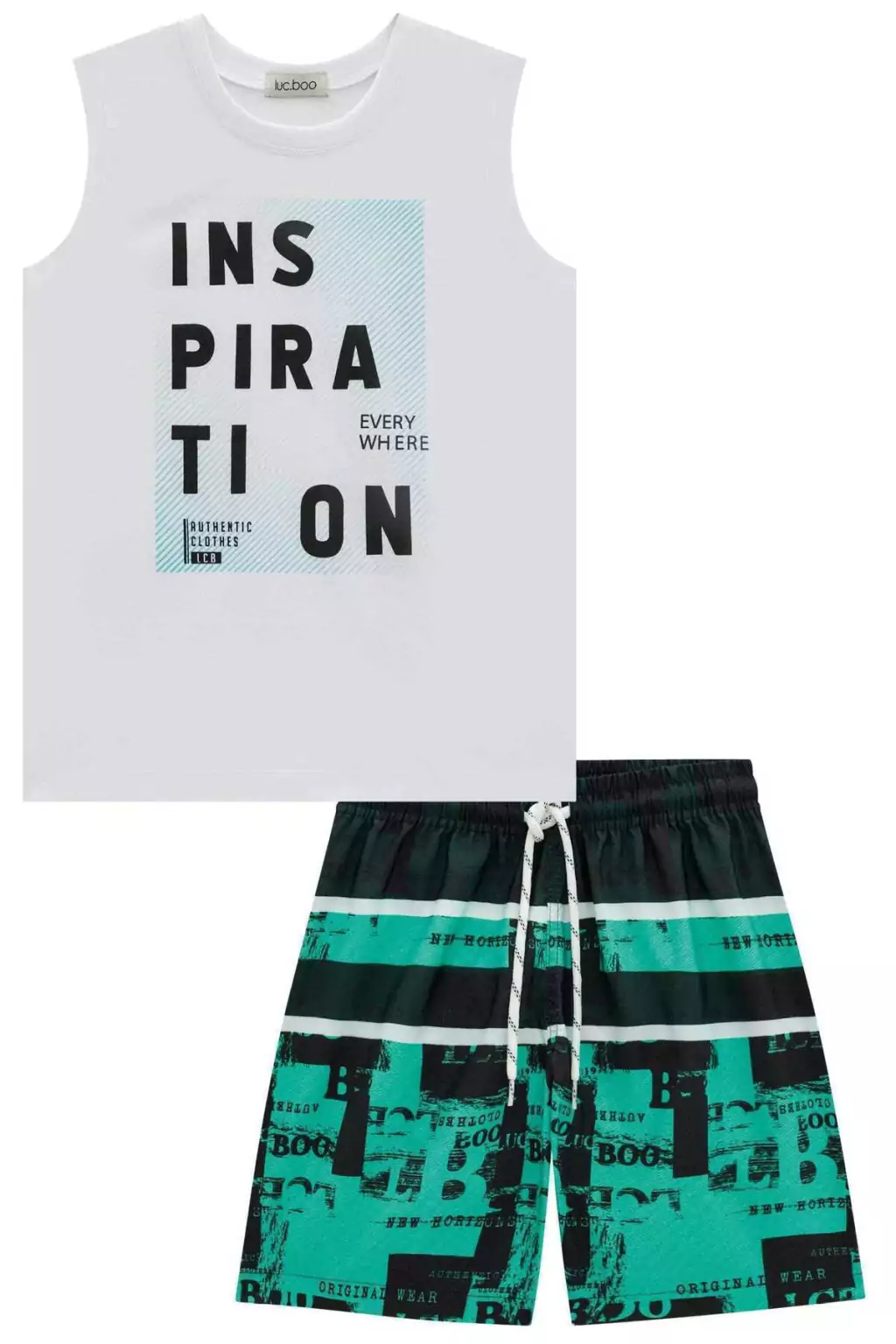 Conjunto de Regata em Meia Malha e Bermuda em Nylon com Elastano 69121 LucBoo