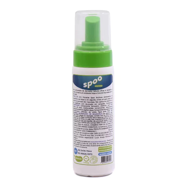 O Spoo é um produto compacto que acompanha um paninho ecológico para auxiliar a remoção de toda sujeira a ser eliminada, ele garante uma limpeza rápida e eficaz. Sua fórmula natural e orgânica possui tensoativo biodegradável dispondo um alto poder desengordurante, como também ação bactericida e germicida. Deixa tudo muito limpinho e bem protegido.