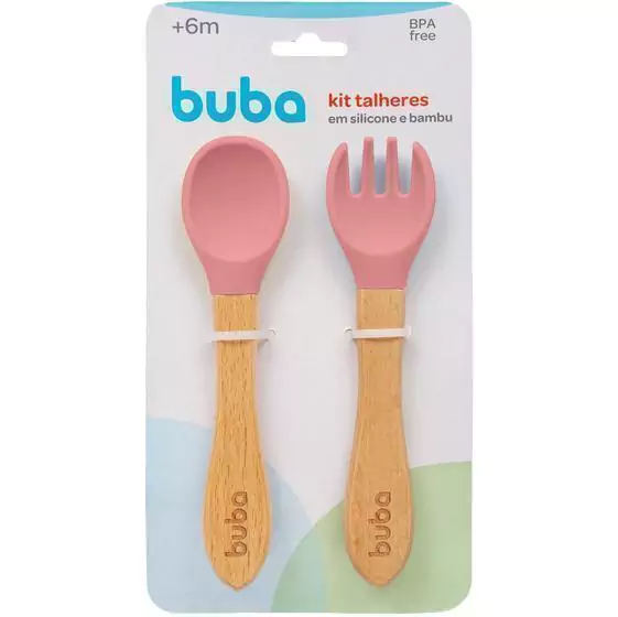 O Kit Talheres em Silicone e Bambu da buba é super prático e higiênico.