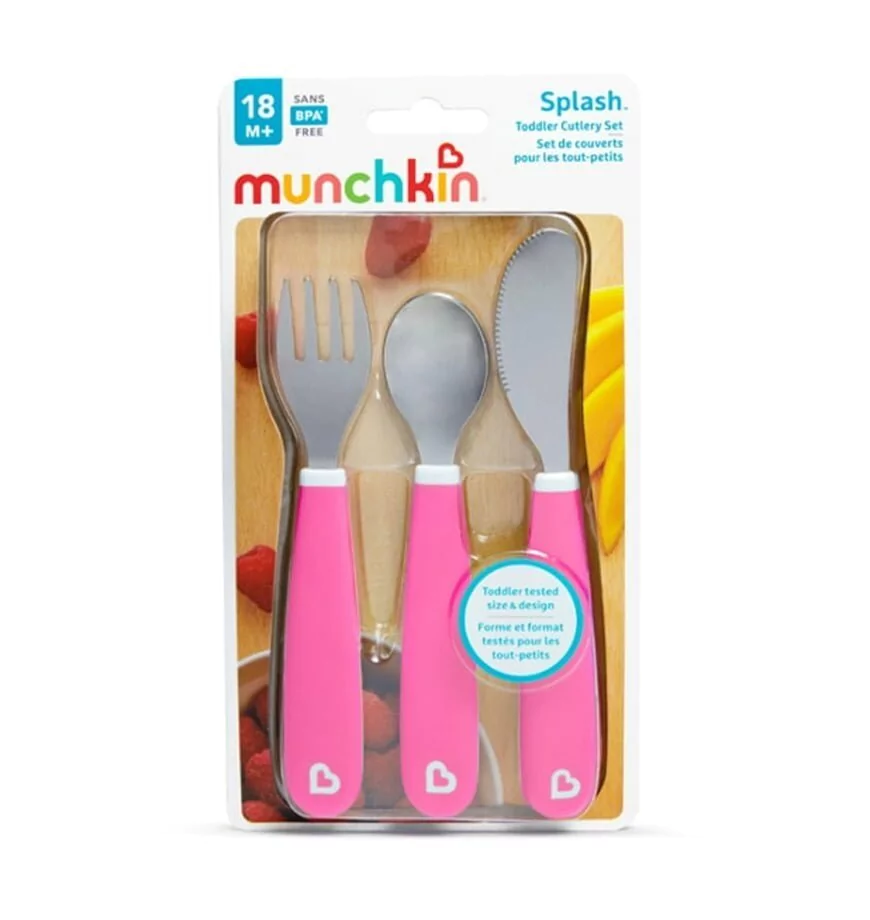 Para dar mais autonomia e segurança aos pequenos, a Munchkin desenvolveu os talheres infantis, que facilitam e estimulam a criança a usar garfos e colheres na hora da alimentação. Com o tamanho perfeito para as pequenas mãos e bocas, possui haste curva que se molda a mão para melhor aderência e equilíbrio na hora de levar a comida na boca, além de ser divertido com cores vibrantes.